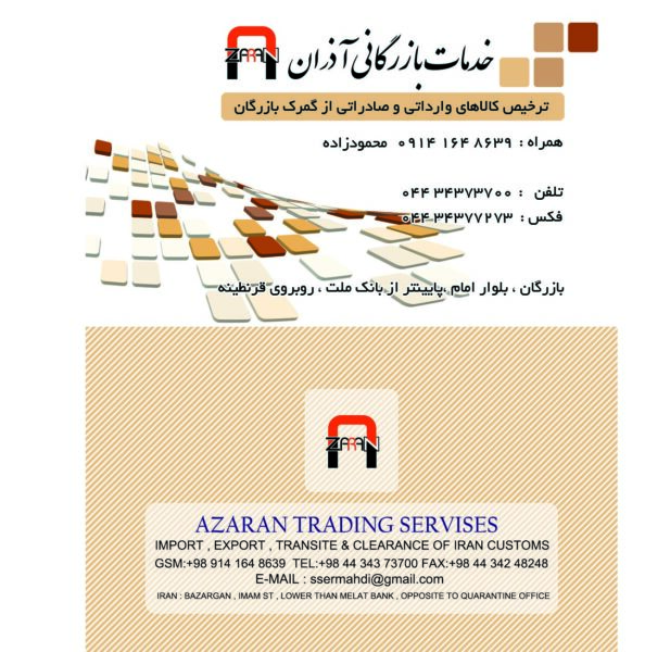 تجارت بین الملل را با ” خدمات بازرگانی آذران ” تجربه کنید.